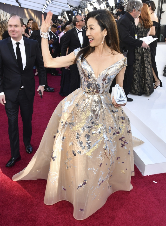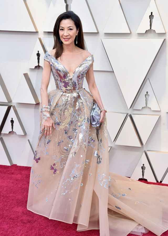 第91屆奧斯卡於香港時間今日舉行,同一眾女星一樣,楊紫瓊以盛裝出席,放下及胸長髮,身穿裸色亮片禮服,搭配簡約珠寶耳環同飾物,高雅華貴~繫腰嘅剪裁、胸前深V剪裁,露出胸部輪廓及肩頸美麗嘅線條,完美突顯佢美好嘅身段,雖然楊紫瓊唔係話皺紋都無條,不過整體面貌同神態都唔似一個已經50歲以上嘅人,網民紛紛大讚佢完全唔似56歲~