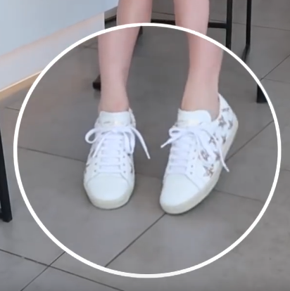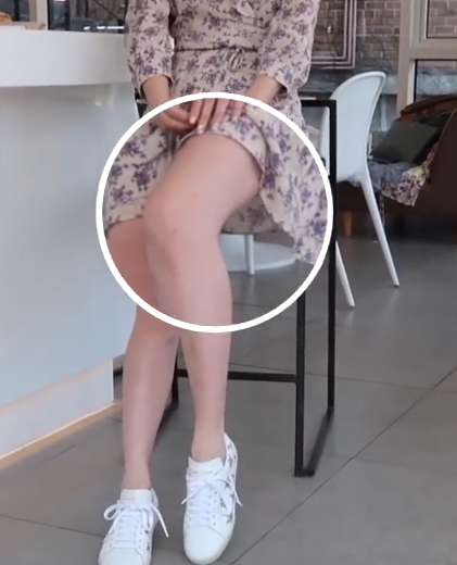 Tips:可稍微把裙子拉上一點點,雙腳看上去會更修長。