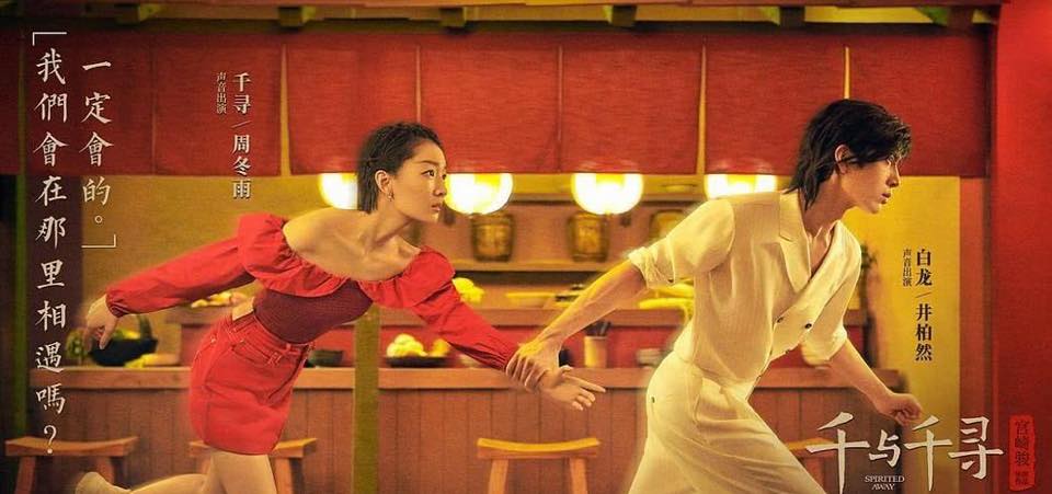 海報為了貼近原本的動畫電影,於是都模仿了動畫電影的一些經典場景,不知道看罷又會否令妳和宮崎駿粉絲想法一樣,認為破壞這套童年回憶的動畫呢?還是令妳想到國內看一這套由周冬雨聲演的《千與千尋》呢?