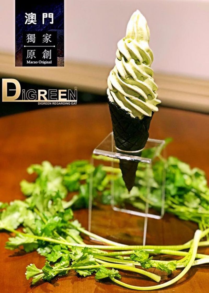 今次 DIGREEN 全新推出期間限定嘅芫荽味雪糕,只供應到8月30日同只限新濠天地Soho店供應,青綠色雪糕加上黑色雪糕筒,唔講芫荽味雪糕陣味係點,淨係視覺已經夠晒震撼!