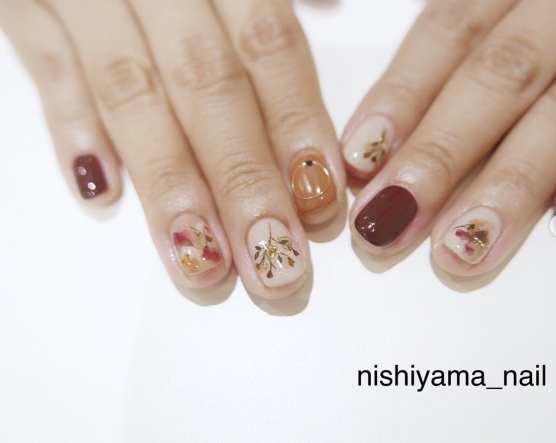提到美甲款式當然少不了的花花系列,@nishiyama_nail 的花花圖案十分精細,還會加上少少金屬小裝飾,感覺更高貴優雅。