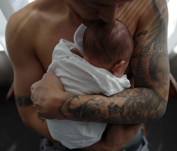 手抱Cody ,輕吻囝囝頭仔,大家都被呢幕溶化了~果然漢子都有柔情一刻,或者好似樂仔咁講,為人父親「能見你一面,多遠都值得。」