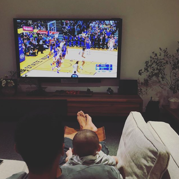 兩仔爺一齊睇NBA,Cody年紀輕輕就開始品嚐何謂「男人的浪漫」~