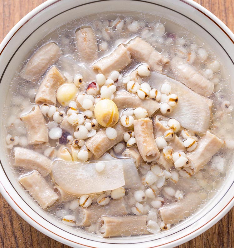 健脾胃、補腎、利濕。經常感冒或病後脾胃氣虛特別適合飲用。特別在流感季節,「四神素湯」有增強免疫力和對抗病邪的效果。一星期服兩至三次便可。