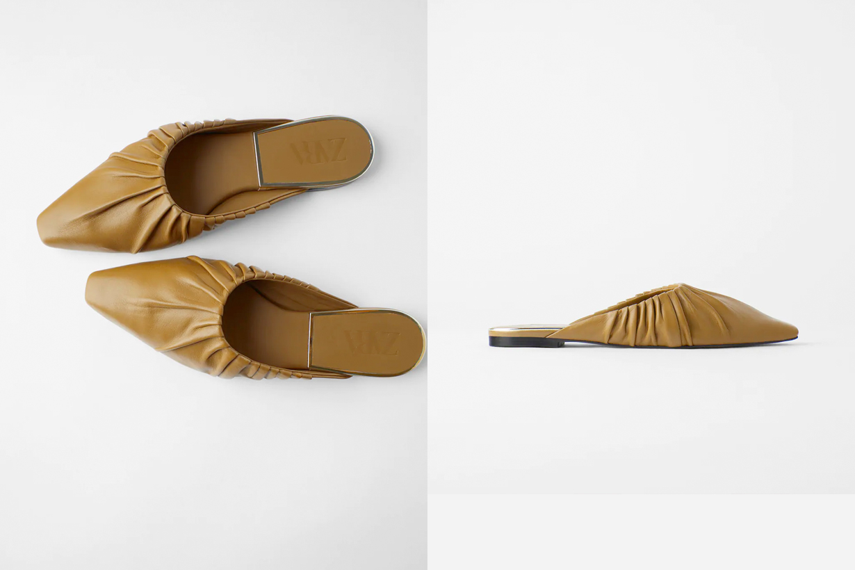 FLAT LEATHER MULES WITH GATHERED DETAIL HK549減至HK399
