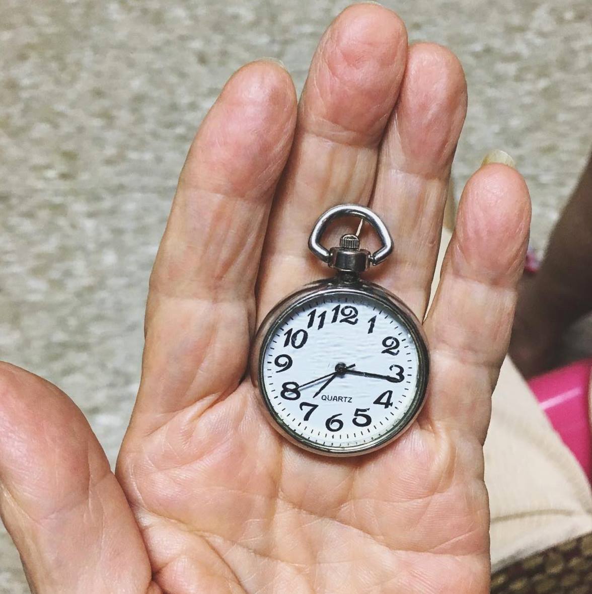 七點十五分,是我愛人離去的時間,這是我男人送我的懷錶,有陣子我都很害怕看到這個錶!但後來我夢到他,他說我活的好活得快樂才是愛他!